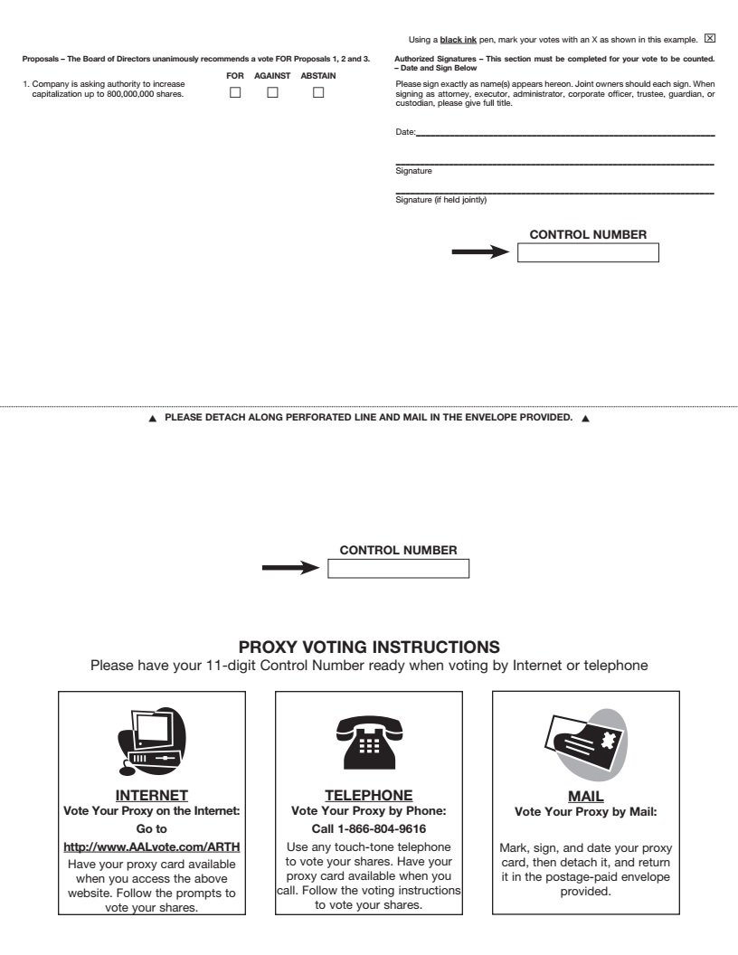 | · | Register at http://viewproxy.com/arth/2020 by 11:59 PM eastern time on June 29, 2020. As part of the registration process you will need to enter your name, phone number, and e-mail address, and provide a copy of the legal proxy (which may be uploaded to the registration website or sent via e-mail to virtualmeeting@viewproxy.com), following which you will receive an e-mail confirming your registration, your Control Number, as well as the password to attend the Special Meeting. |